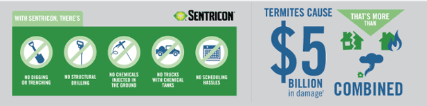 Additionally, our current Pest Control customers can bundle to add the Sentricon Termite Colony Protection System and save as much as $100 a year.