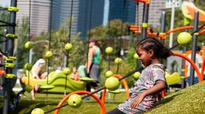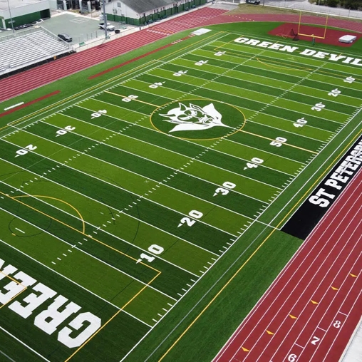 Playground Grass™Designed with children’s safety in mind, this artificial turf is ASTM safety rated up to 13 feet to maximize safety around high equipment. -